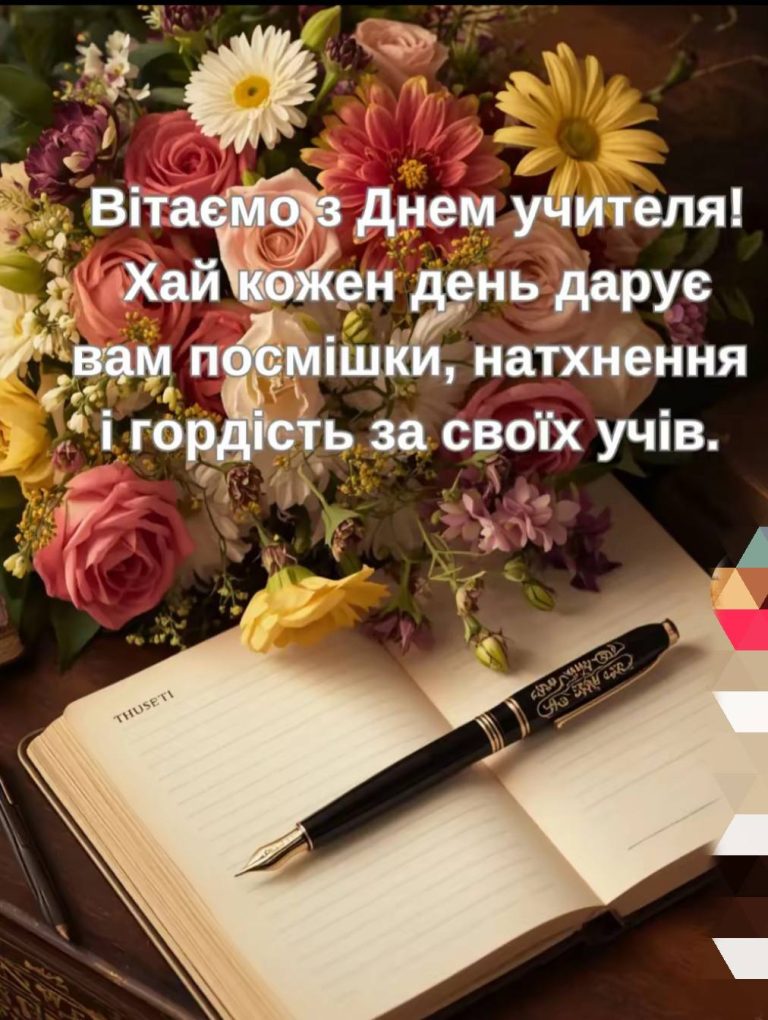 Учителю за доброту й терпіння, За всі знання і за уміння Ми дякуєм! В осінній теплий день Бажаєм радощів, натхнень! За вашу працю непросту За